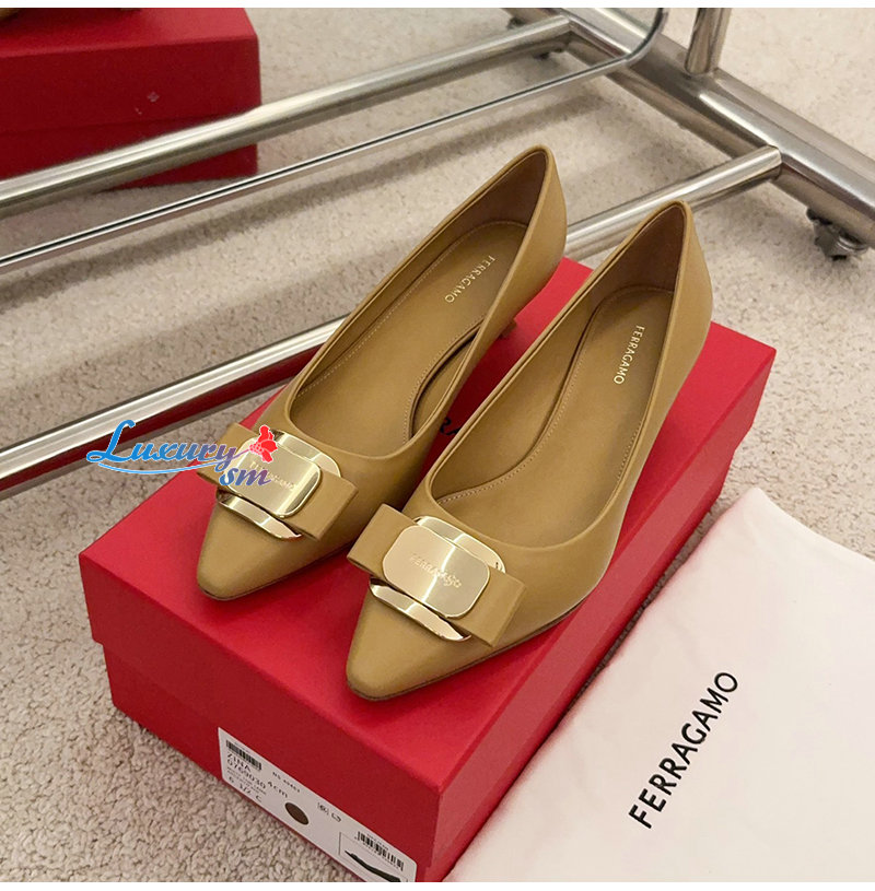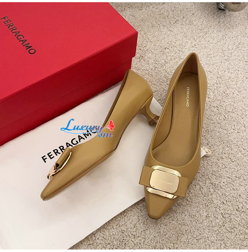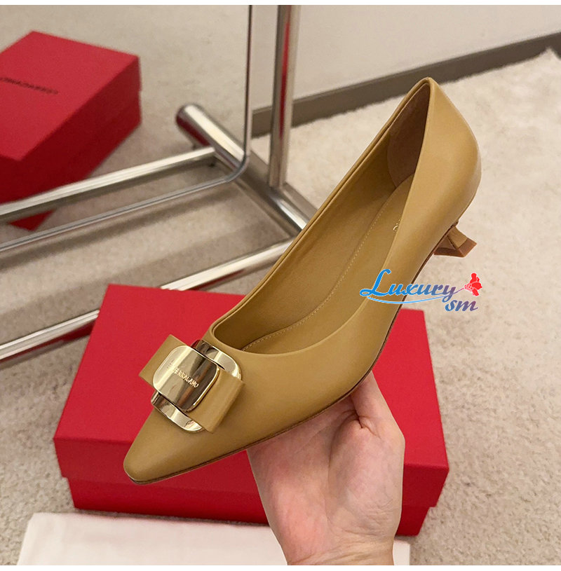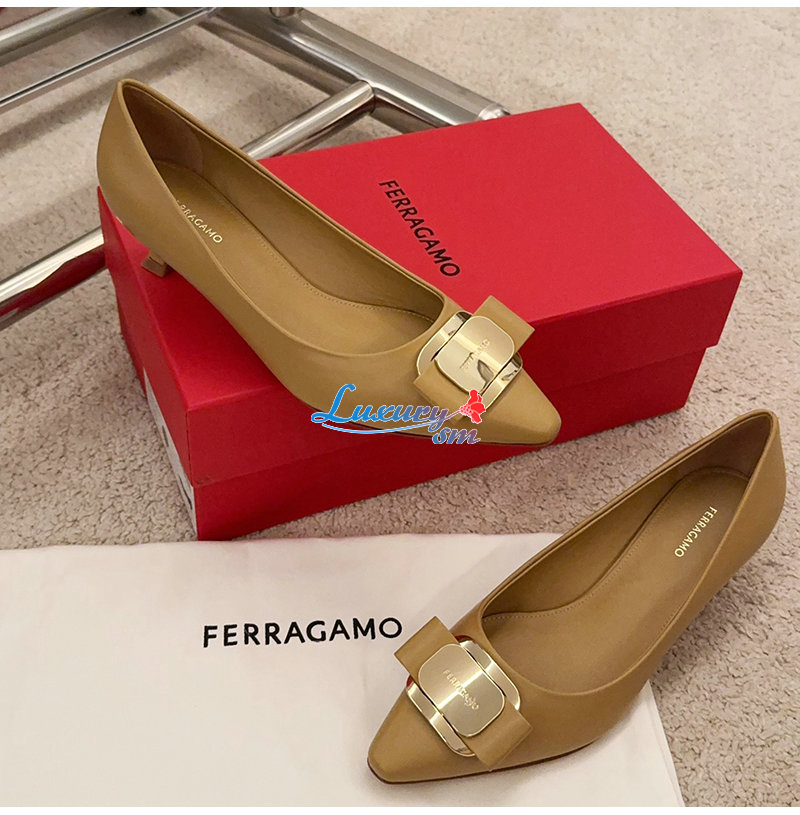 Ferragamo-01H450 페라가모 카멜 뉴 바라 플레이트 키튼 힐 펌프스