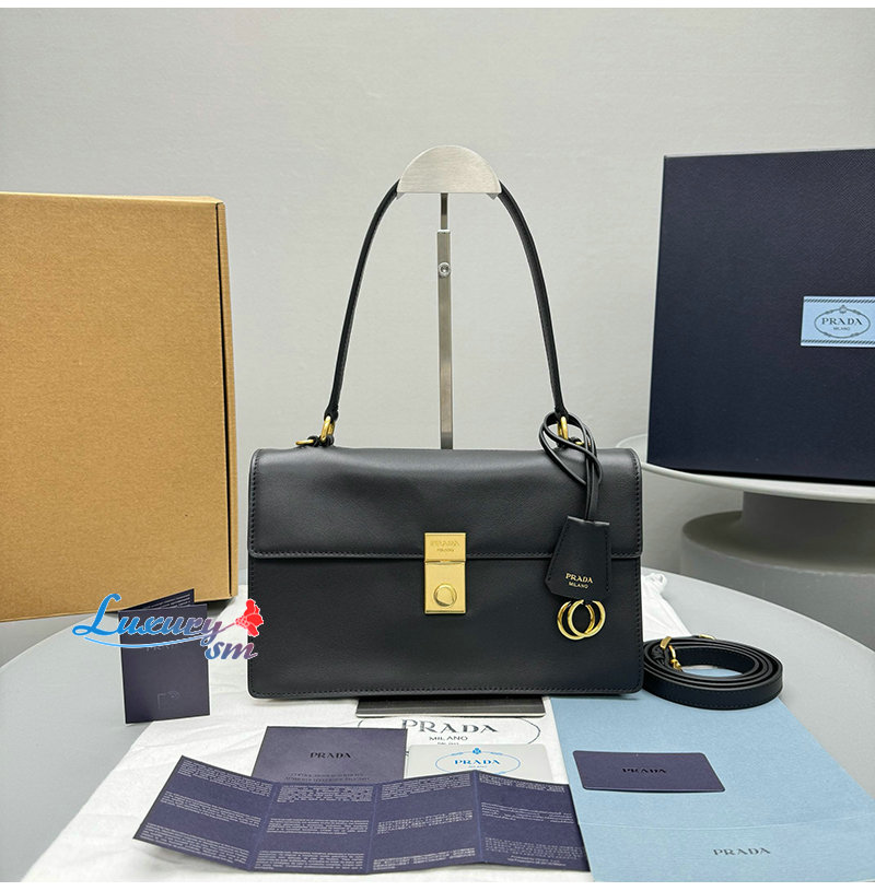 PRADA-1BN023 프라다 블랙 미디엄 가죽 숄더백