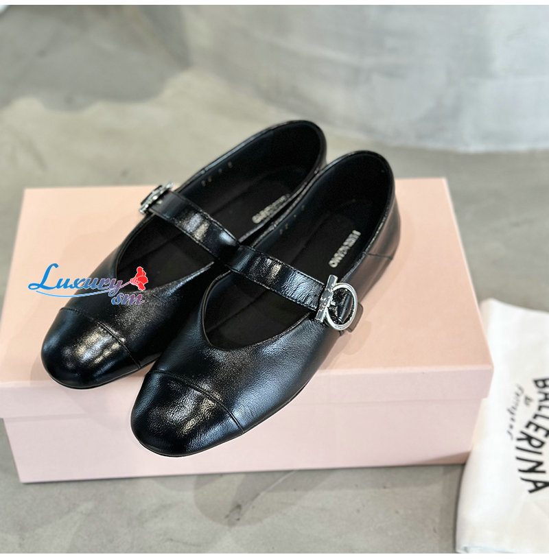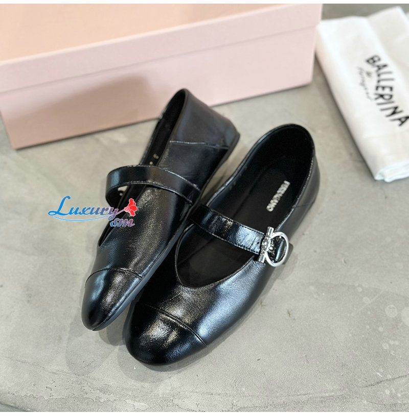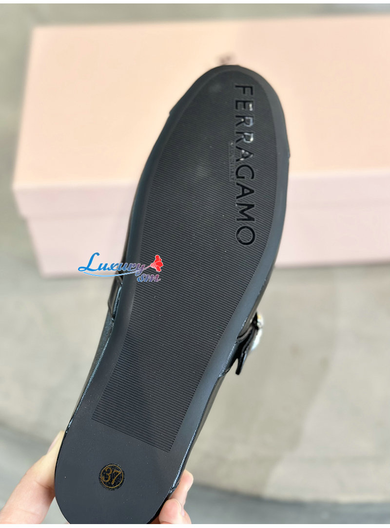 Ferragamo-01J947 페라가모 블랙 간치니 발레 플랫