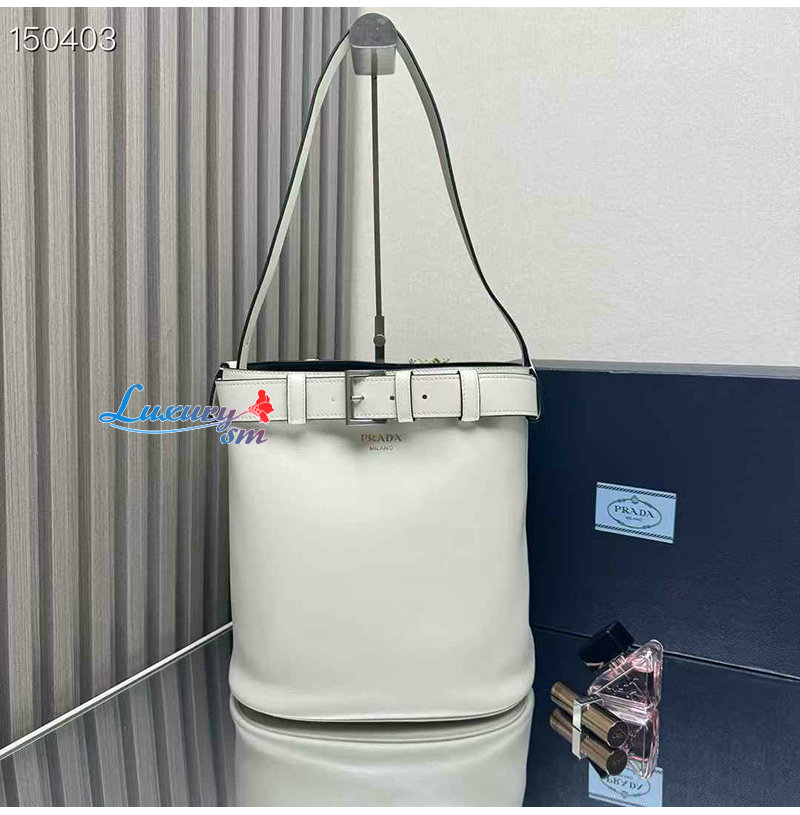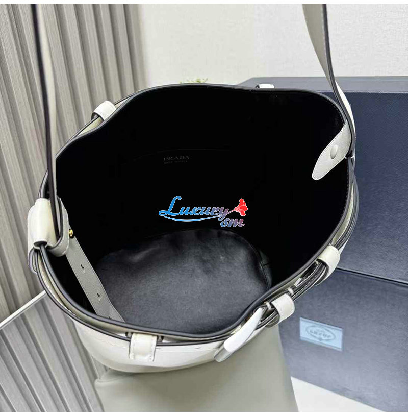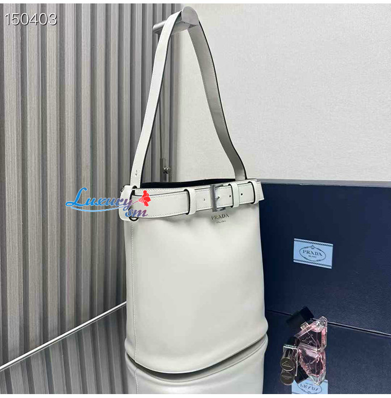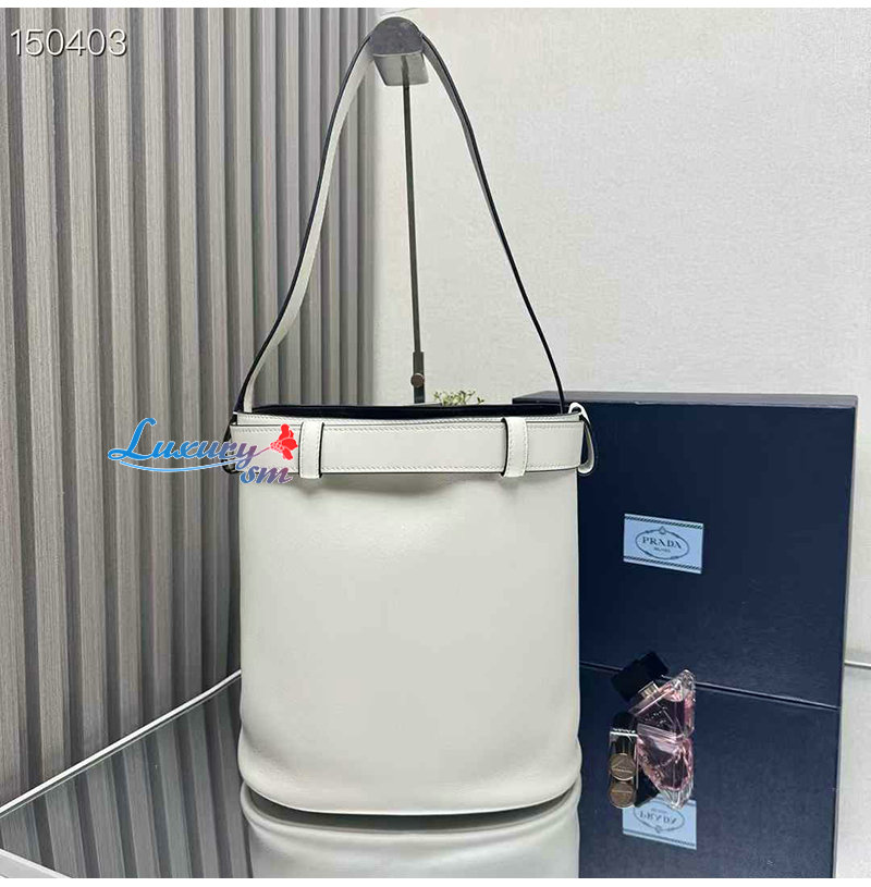 [스페셜오더]PRADA-1BE085 프라다 화이트 가죽 프라다 버클 버킷 백