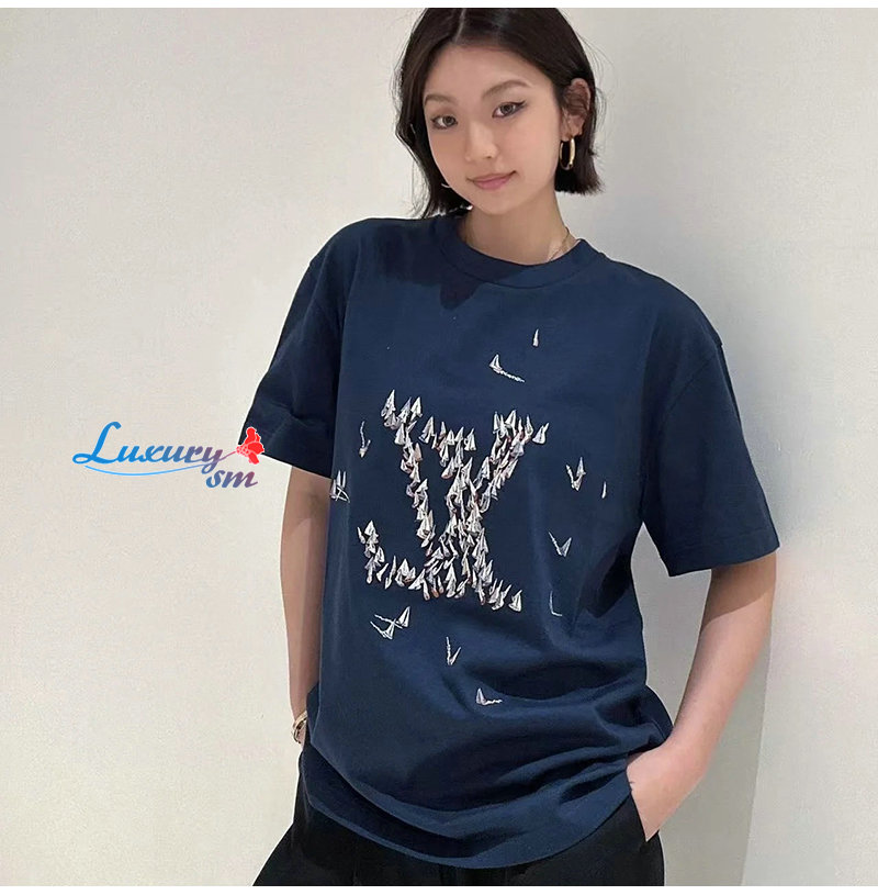LOUIS VUITTON-05061 루이비통 네이비 아플리케 장식 티셔츠 남여공용