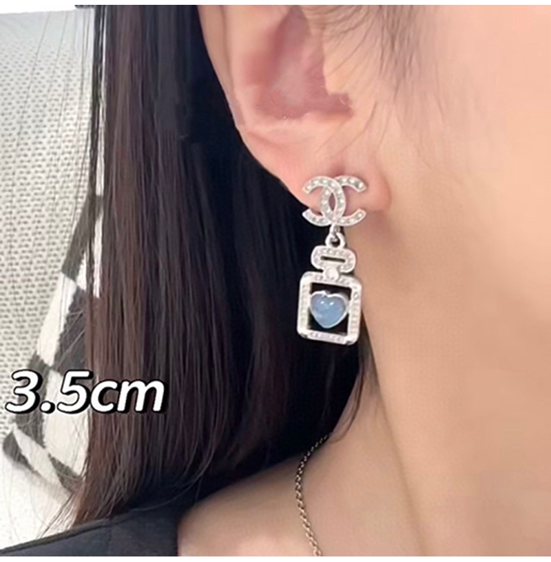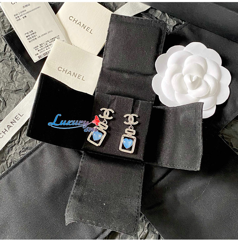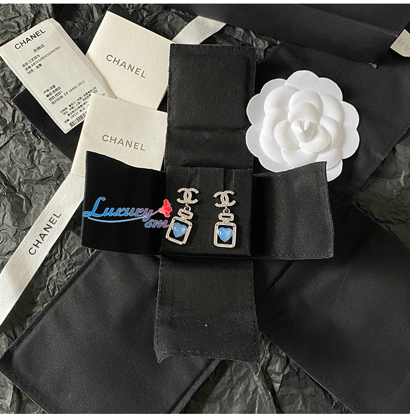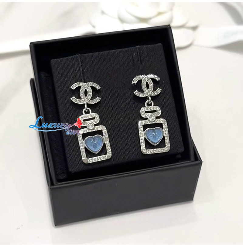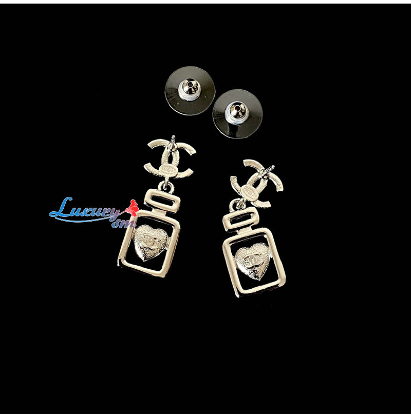 CHANEL-7637 샤넬 실버 크리스탈 장식 CC 로고 귀걸이
