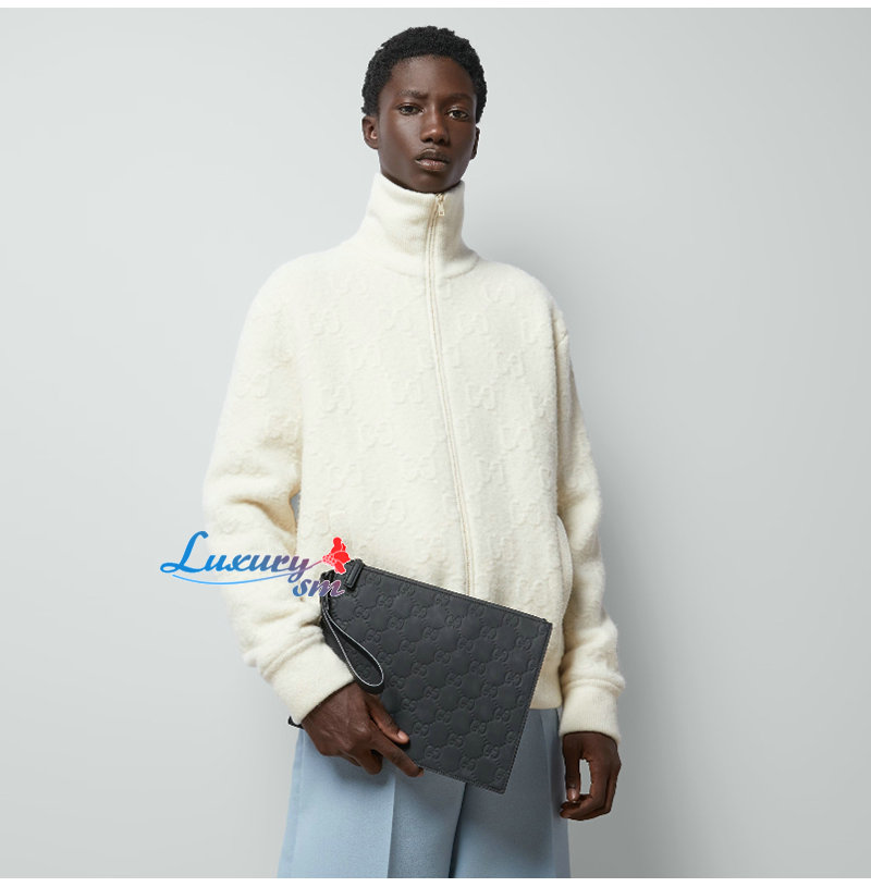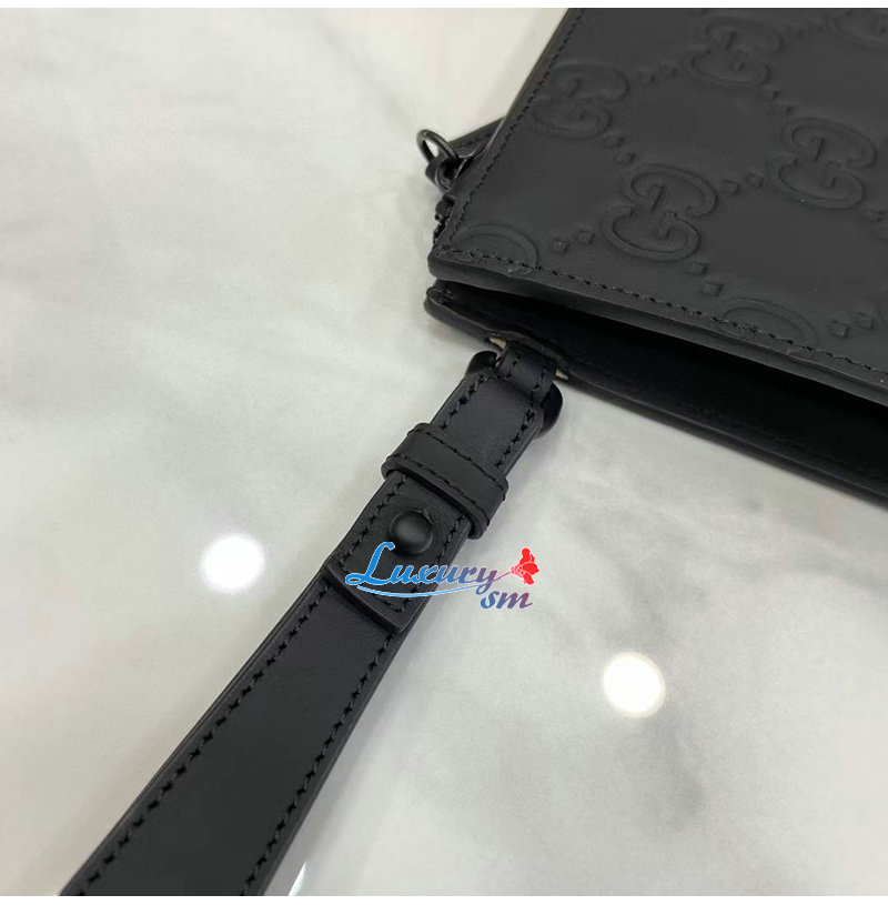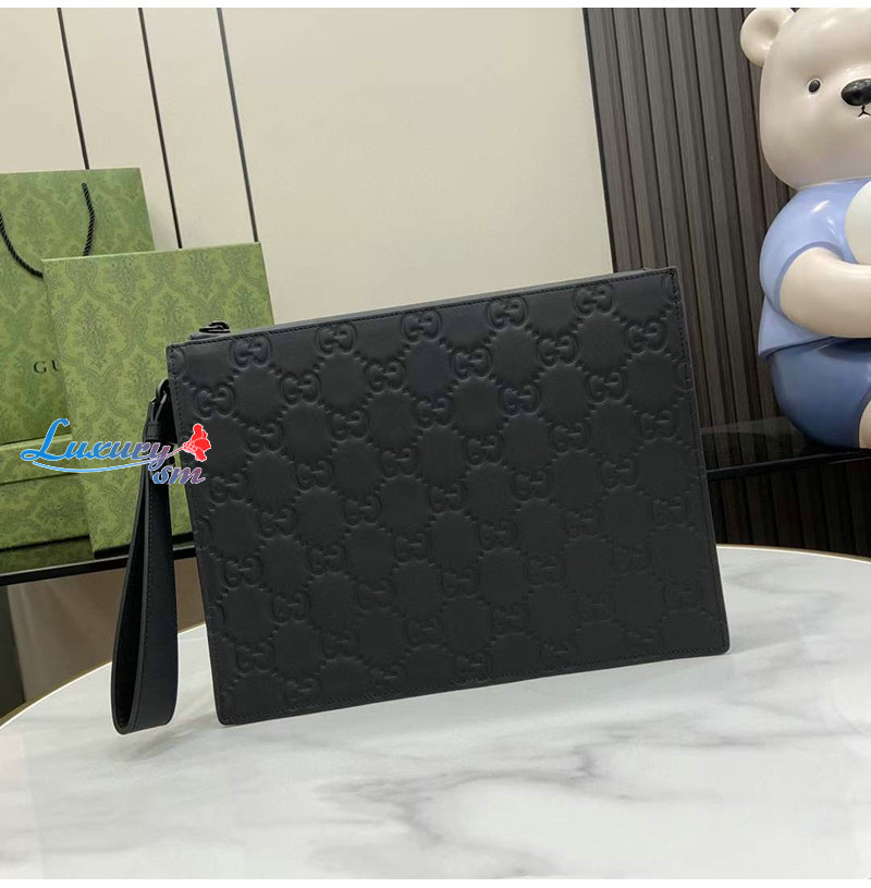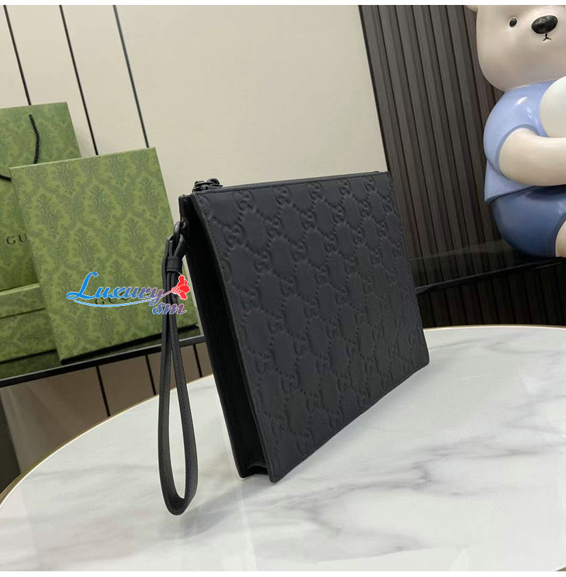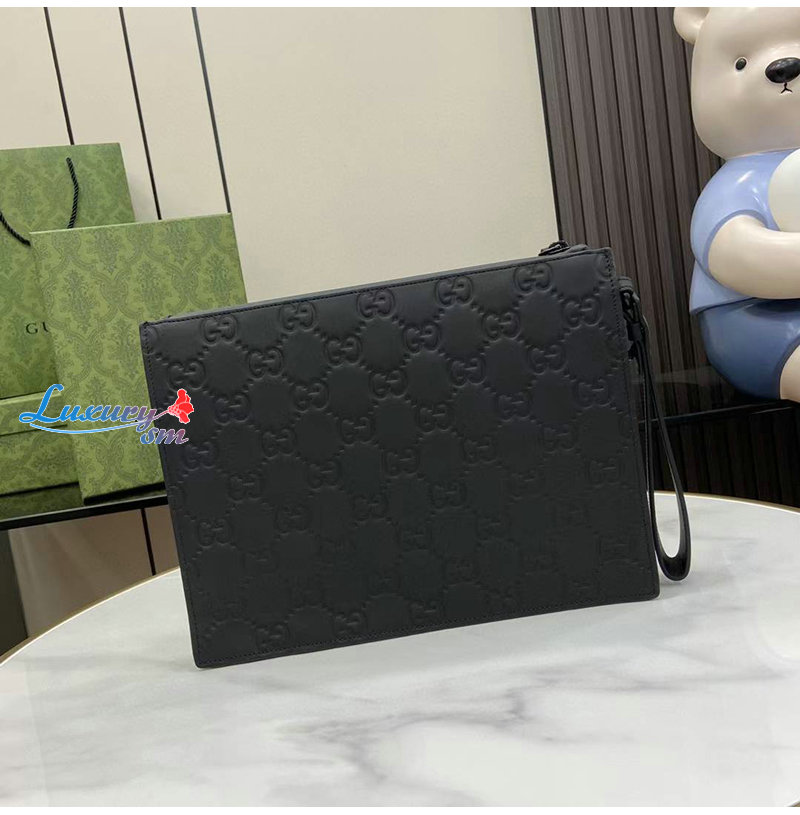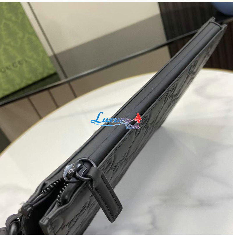 [스페셜오더]GUCCI-771319 1000 구찌 블랙 GG 레더 러버 효과 스몰 파우치