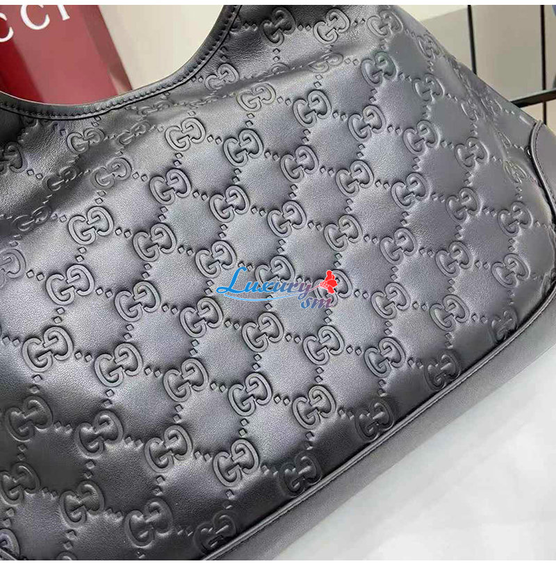 [스페셜오더]GUCCI-834981 1000 구찌 블랙 GG 레더 구찌 B 라지 숄더백