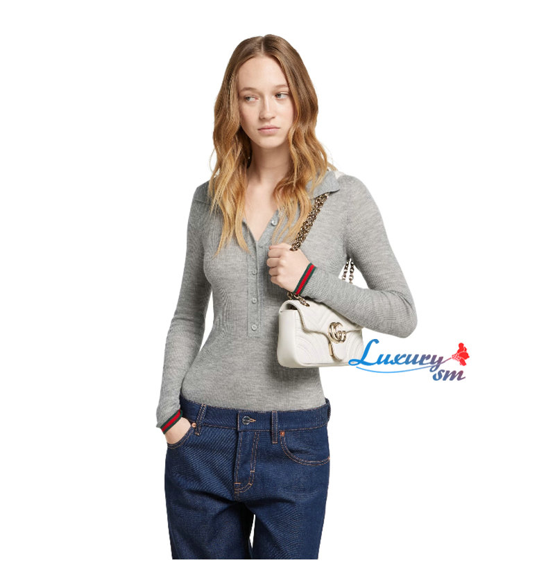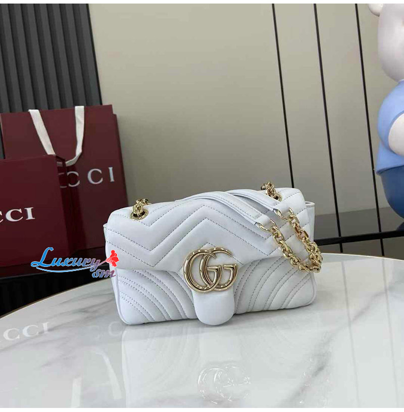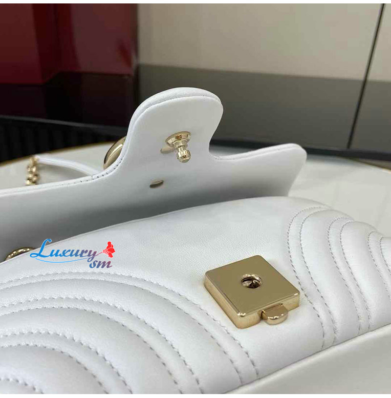 [스페셜오더]GUCCI-837280 9050 구찌 화이트 가죽 GG 마몽 스몰 숄더백