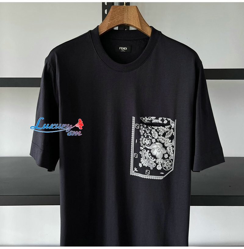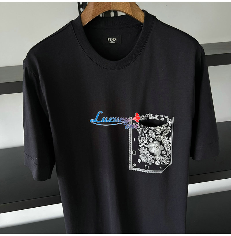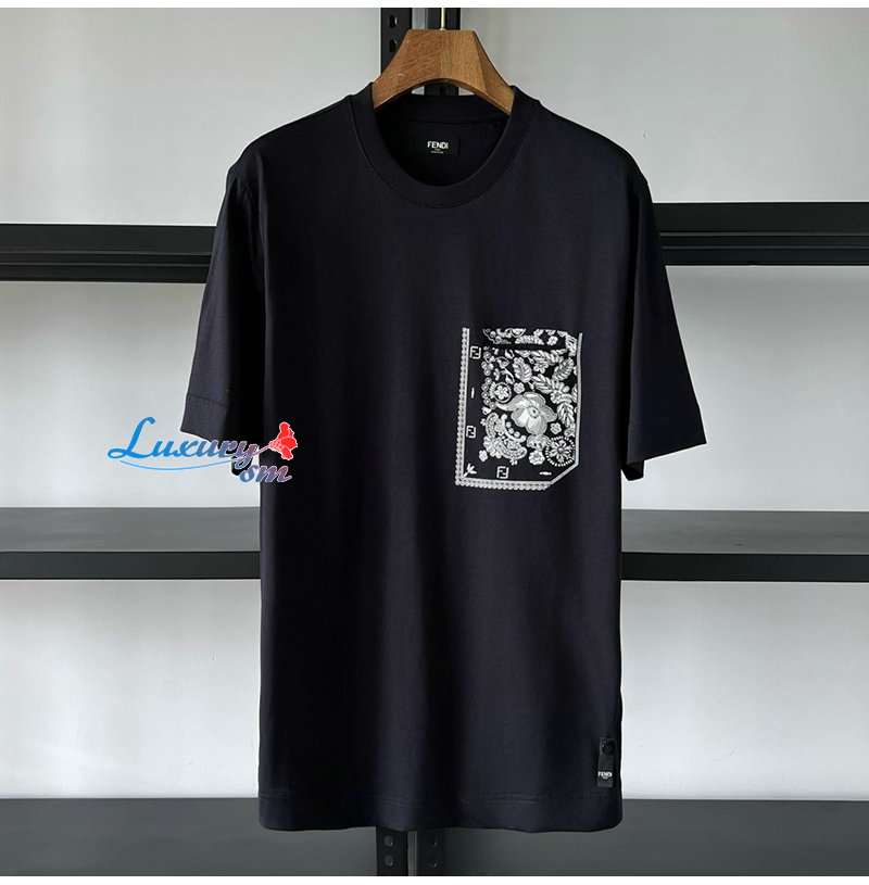 FENDI-06034 펜디 블랙 아플리케 장식 티셔츠 남여공용