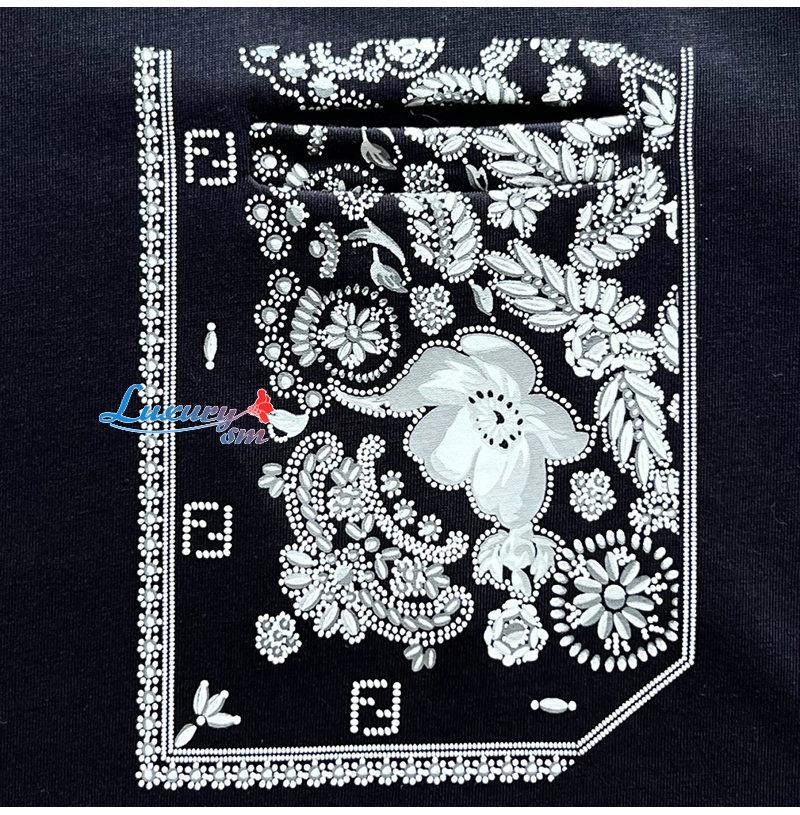 FENDI-06034 펜디 블랙 아플리케 장식 티셔츠