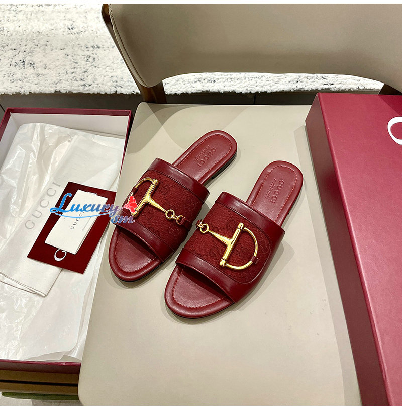 GUCCI-834427 6273 구찌 레드 홀스빗 슬라이드 샌들 여성용