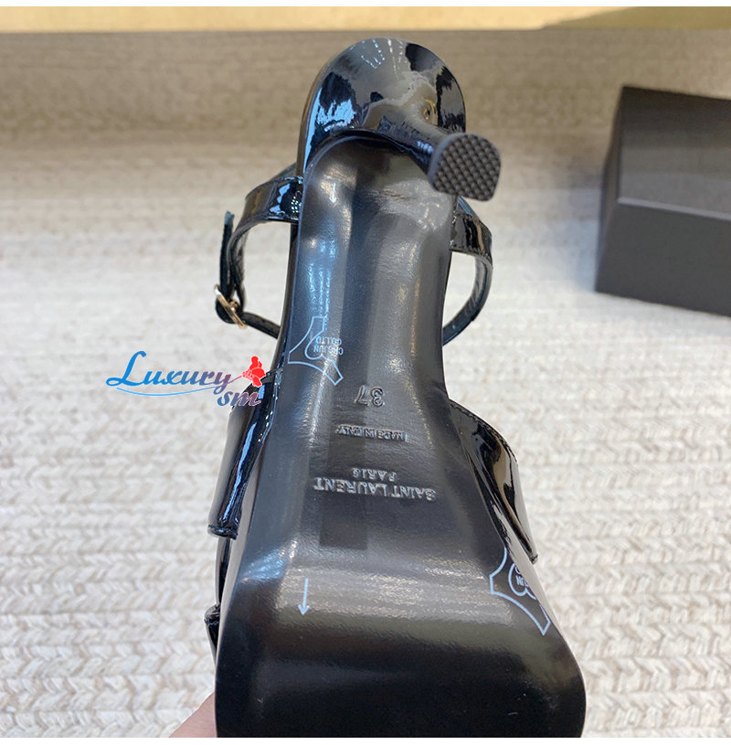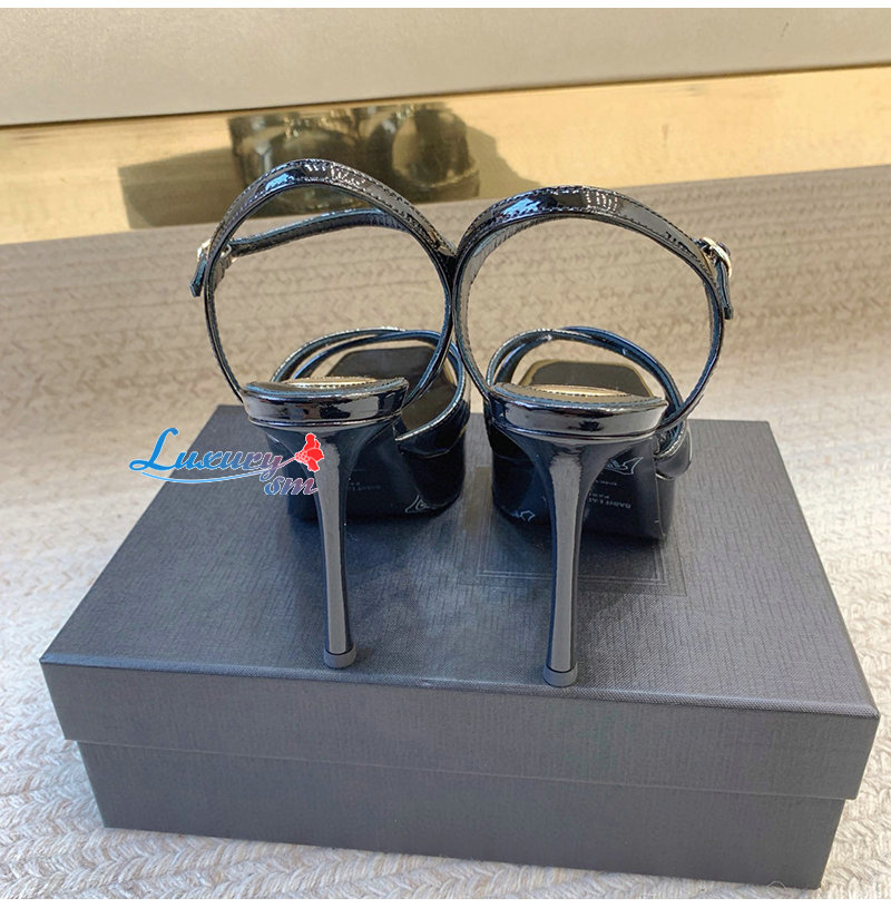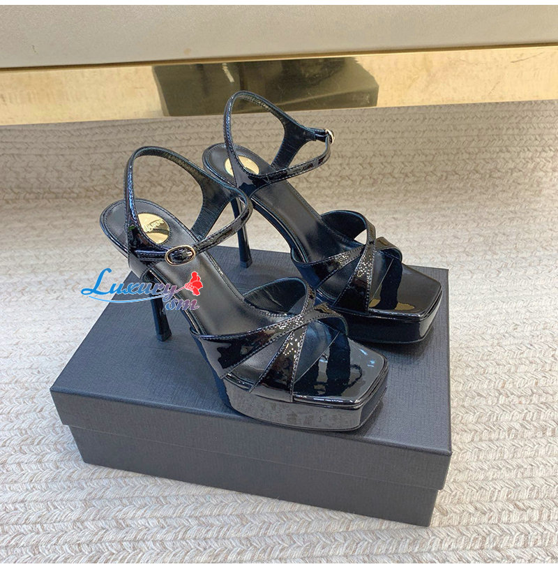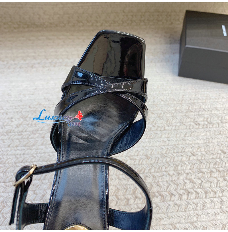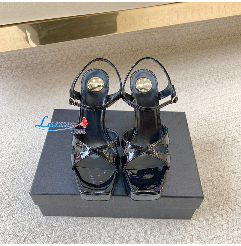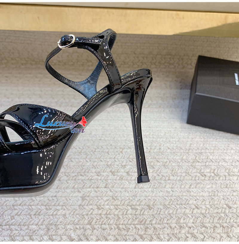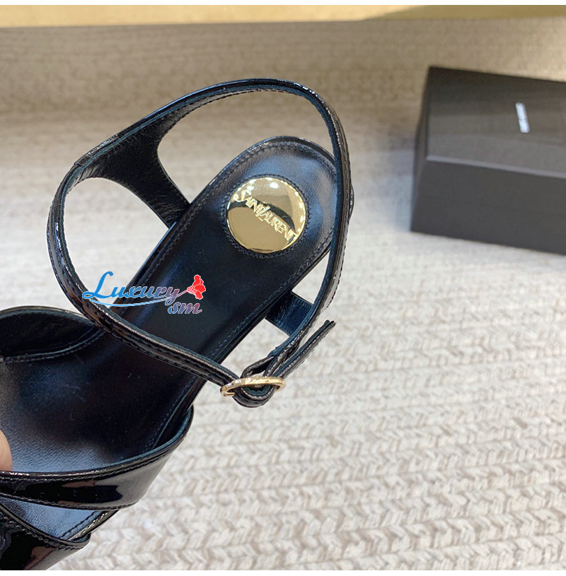 SAINT LAURENT-820579 생 로랑 블랙 페이턴트 가죽 debbie 플랫폼 샌들