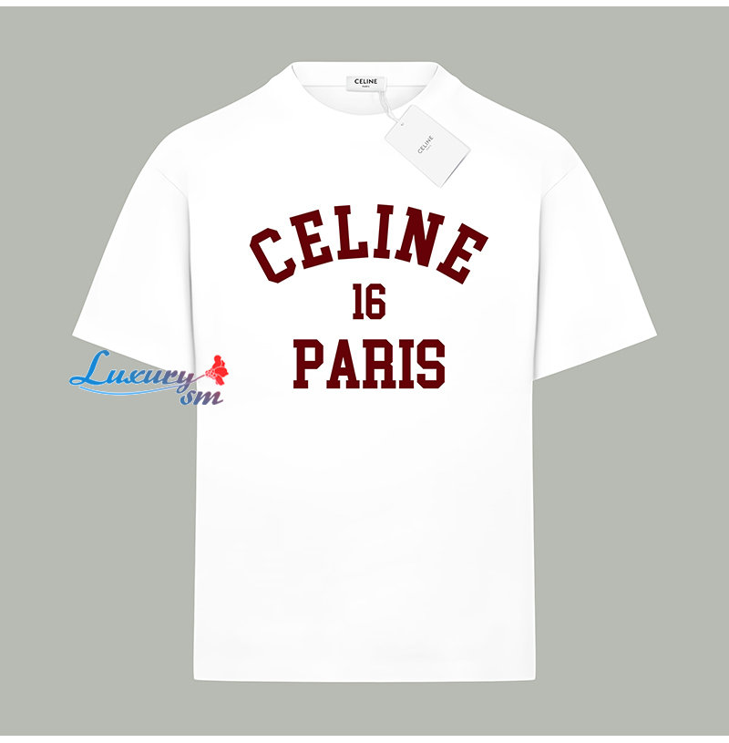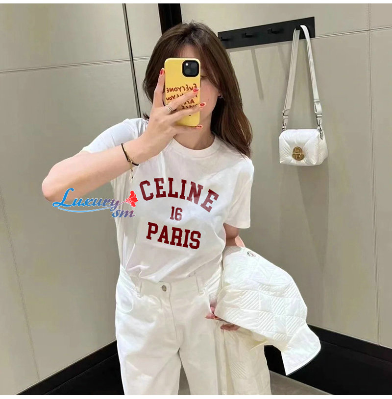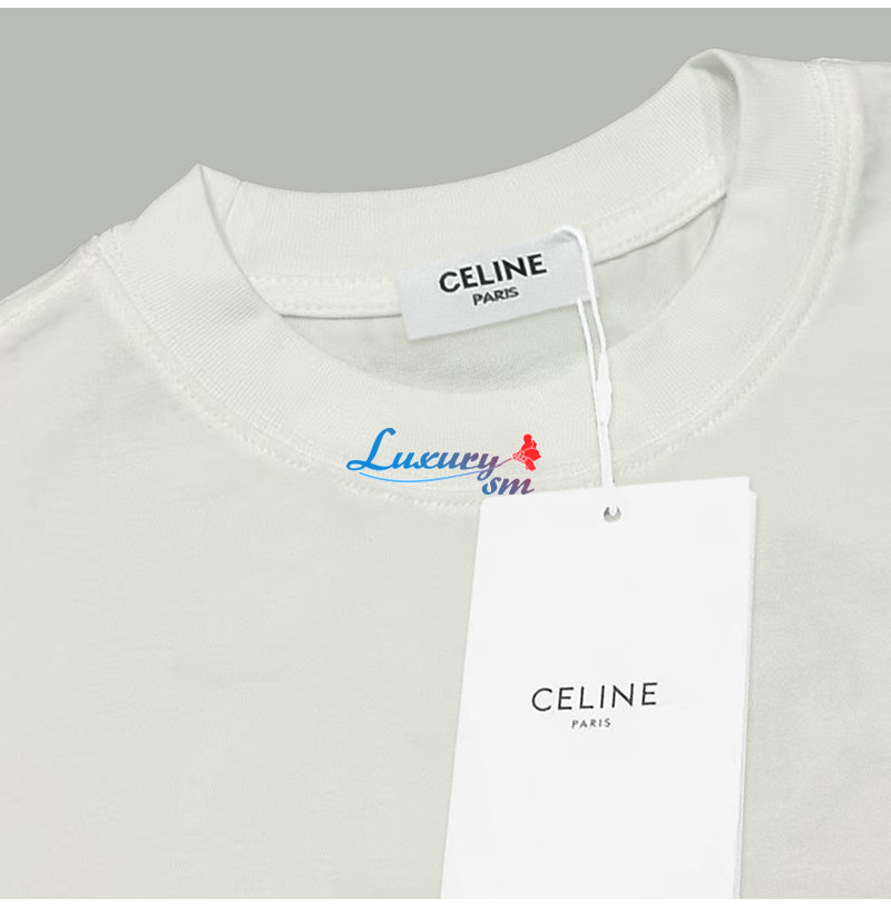 CELINE-06096 셀린느 화이트 프린트 장식 티셔츠