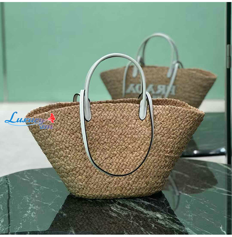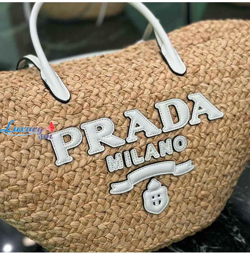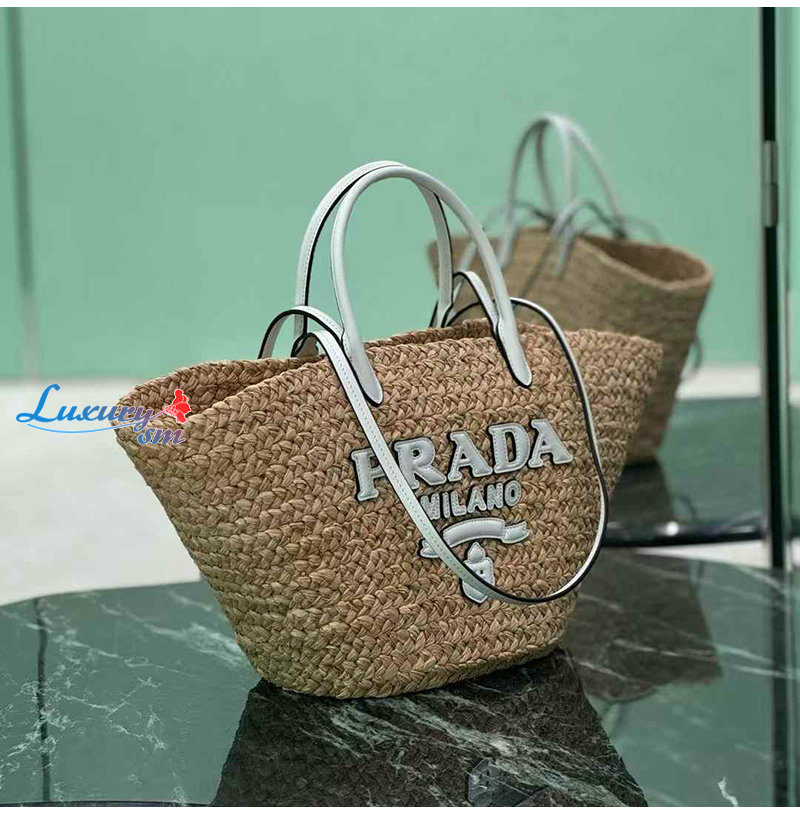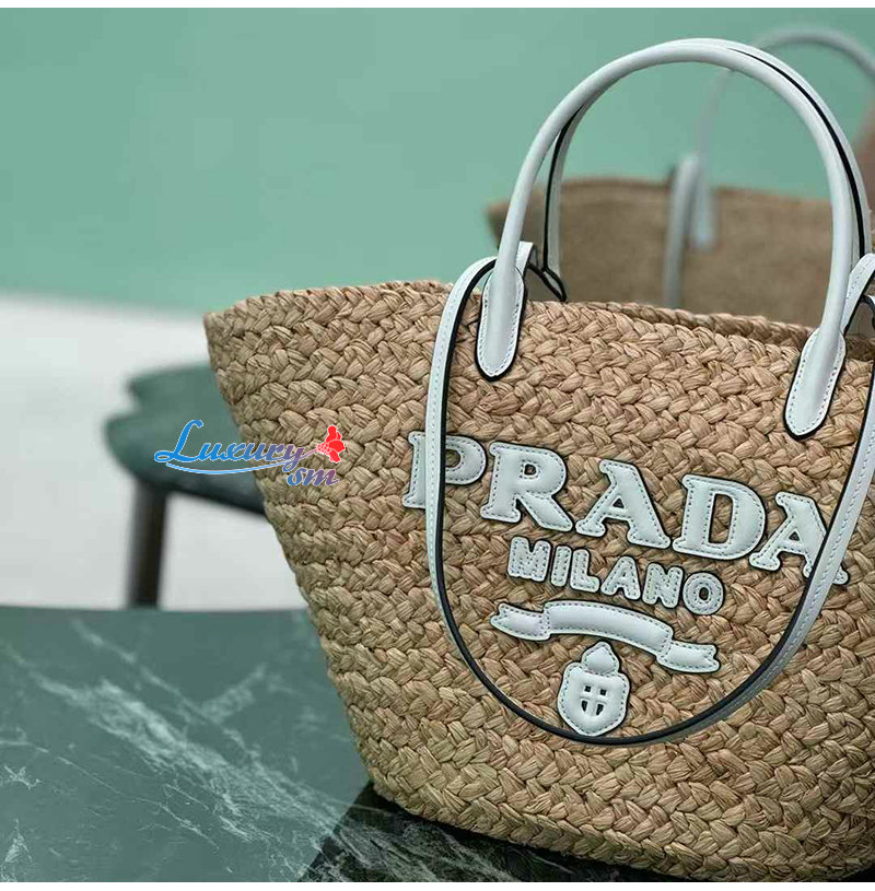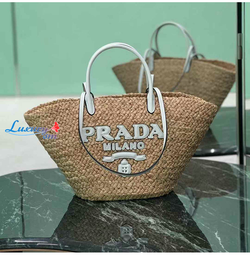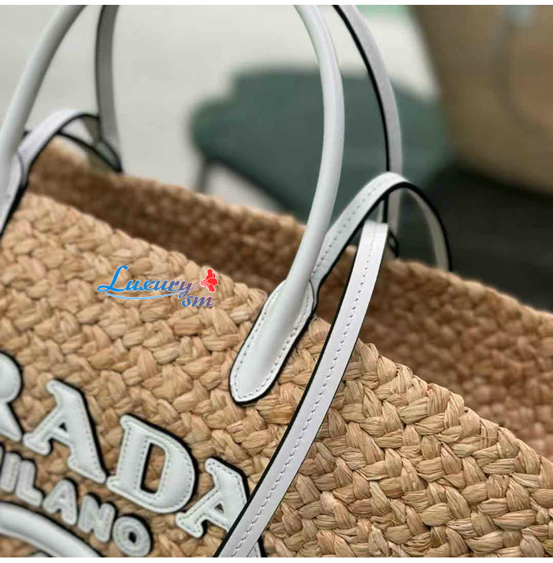 PRADA-1BG470 프라다 베이지/화이트 라지 라피아