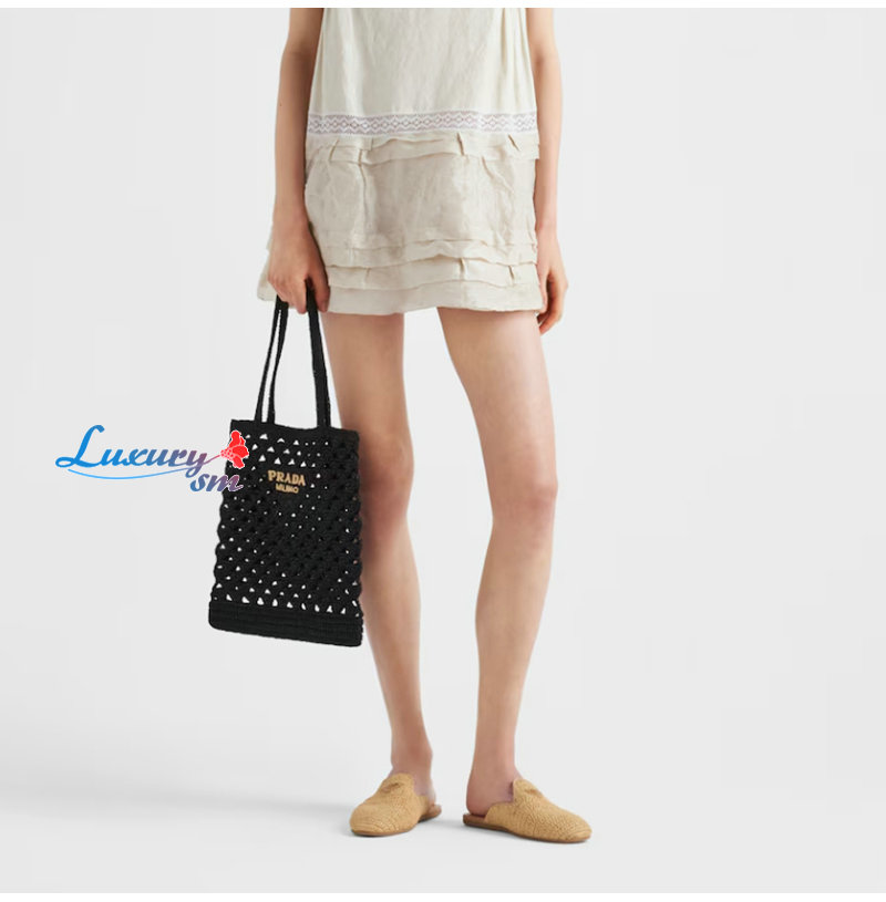 PRADA-1BG493 프라다 블랙 크로셰 토트백