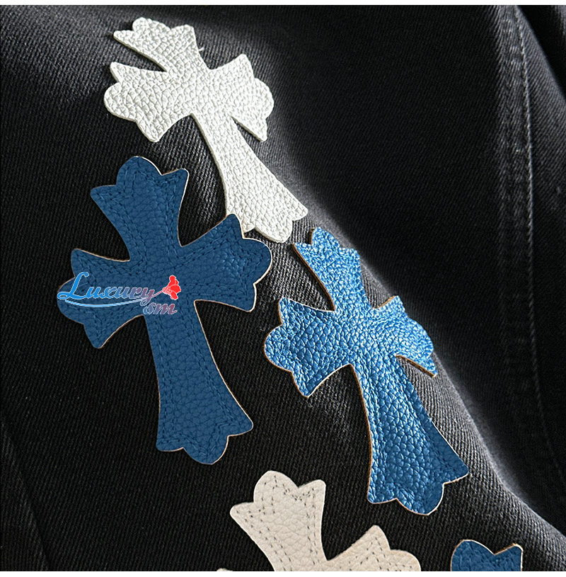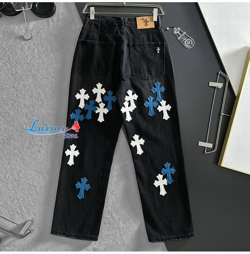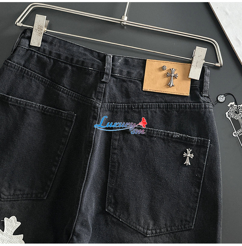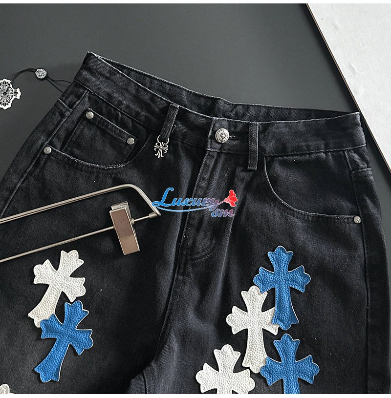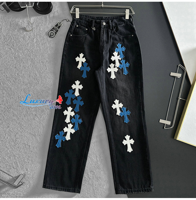 CHROMEHEARTS-06262 크롬하츠 블랙 십자가 아플리케 장식 청바지 남성용