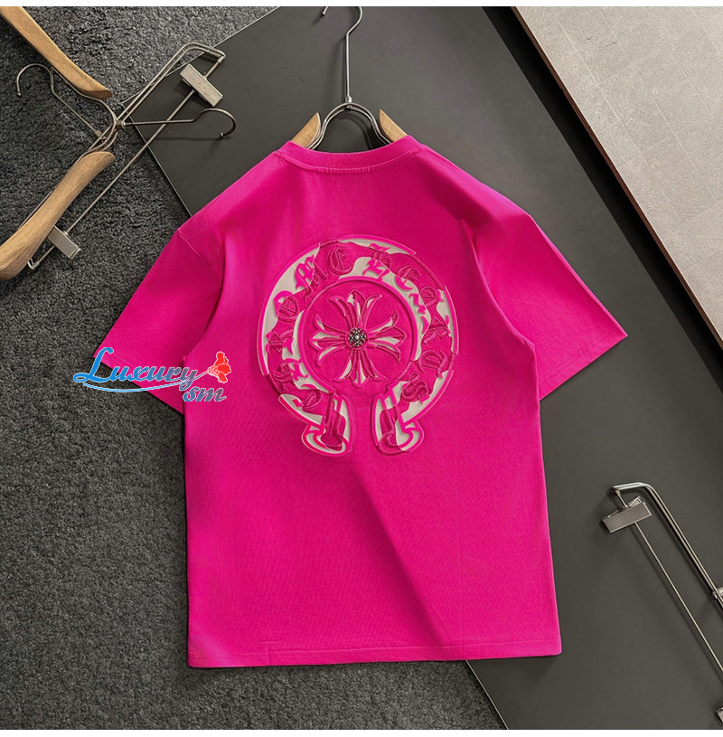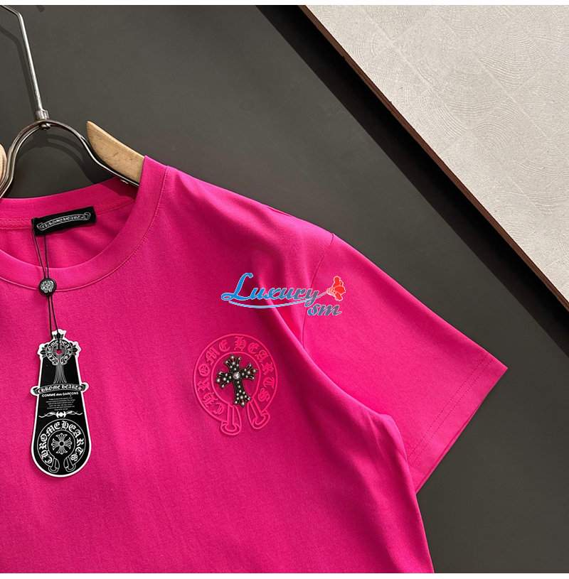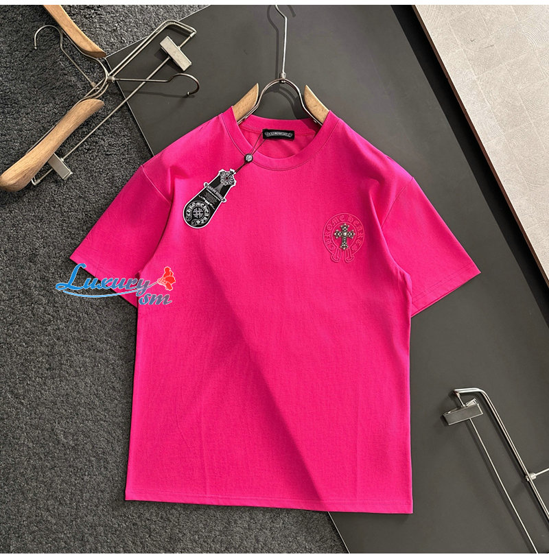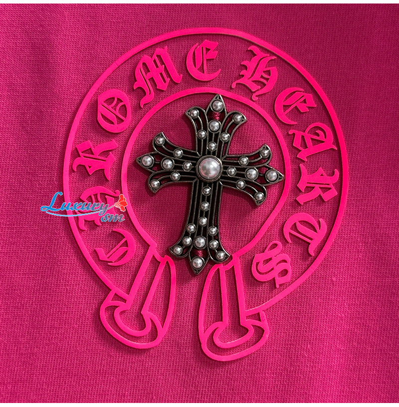 CHROMEHEARTS-062615 크롬하츠 핫핑크 메탈 십자가 장식 티셔츠 남성용