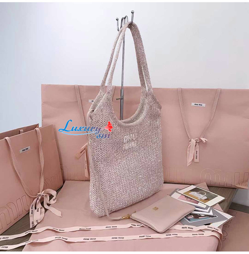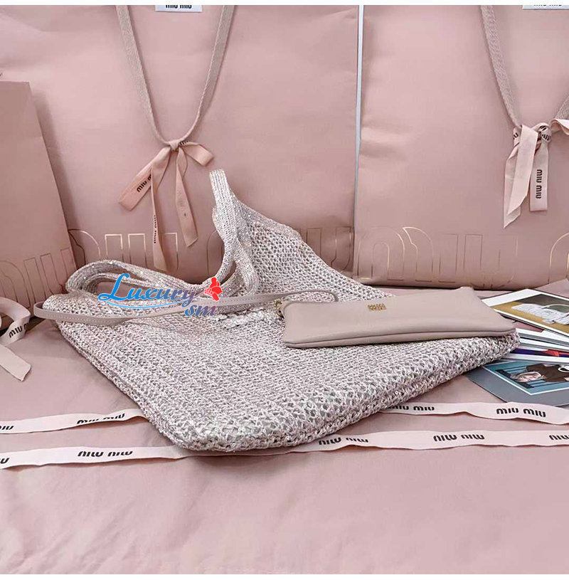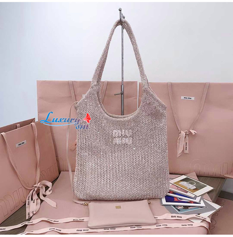 [스페셜오더]MIUMIU-5BG231 미우미우 파우더 핑크 아이비 스팽글 메쉬 백