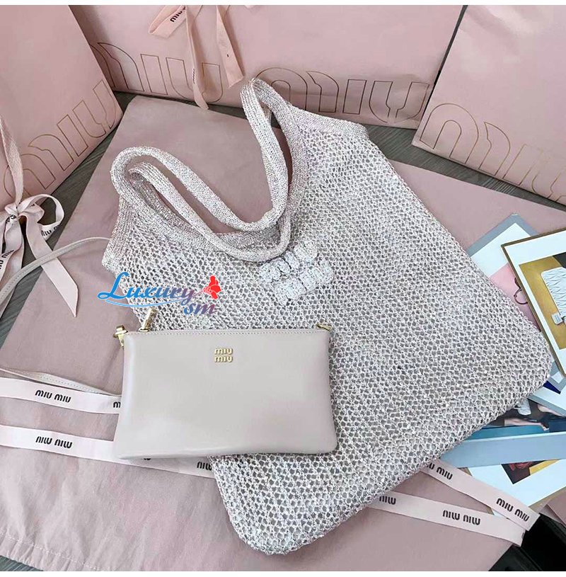 [스페셜오더]MIUMIU-5BG231 미우미우 라이트 블루 아이비 스팽글 메쉬 백 가격 : 400,000원