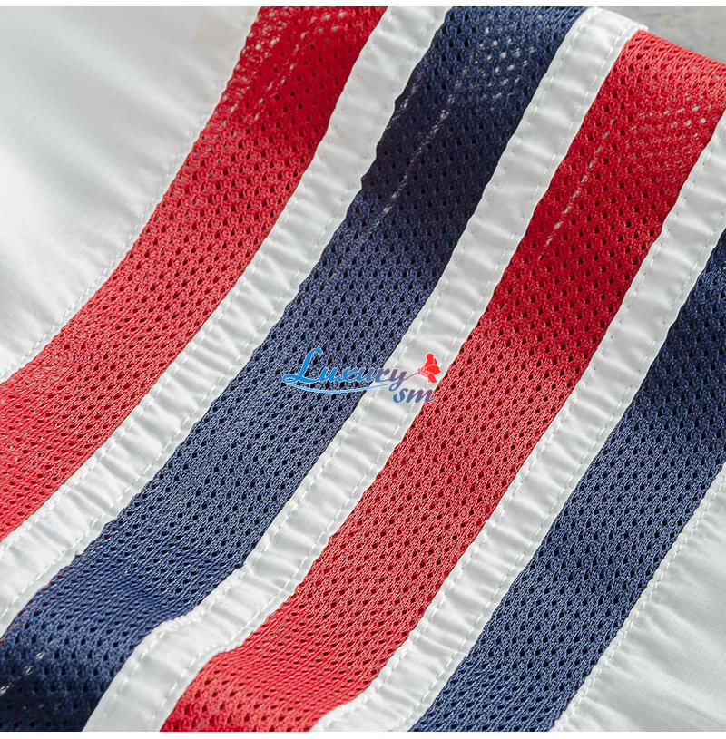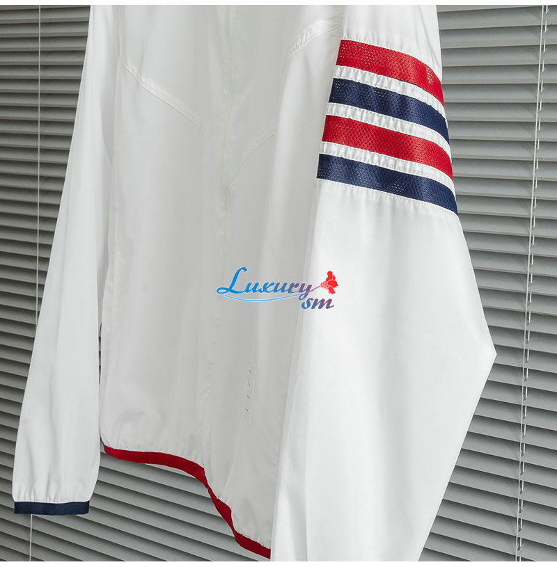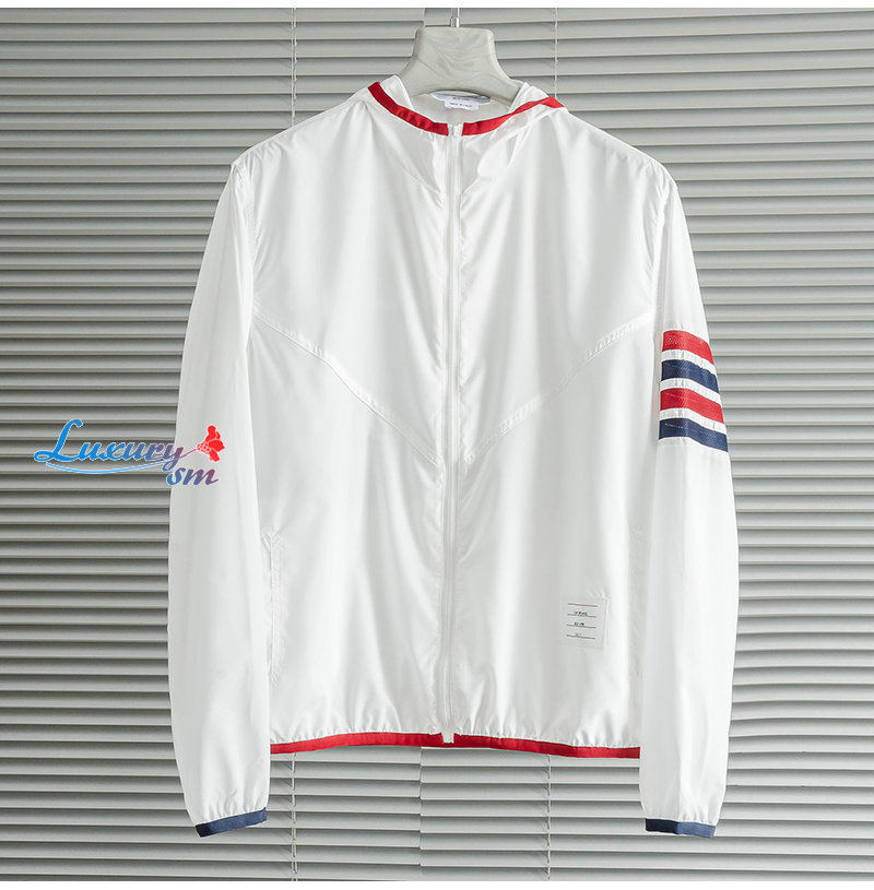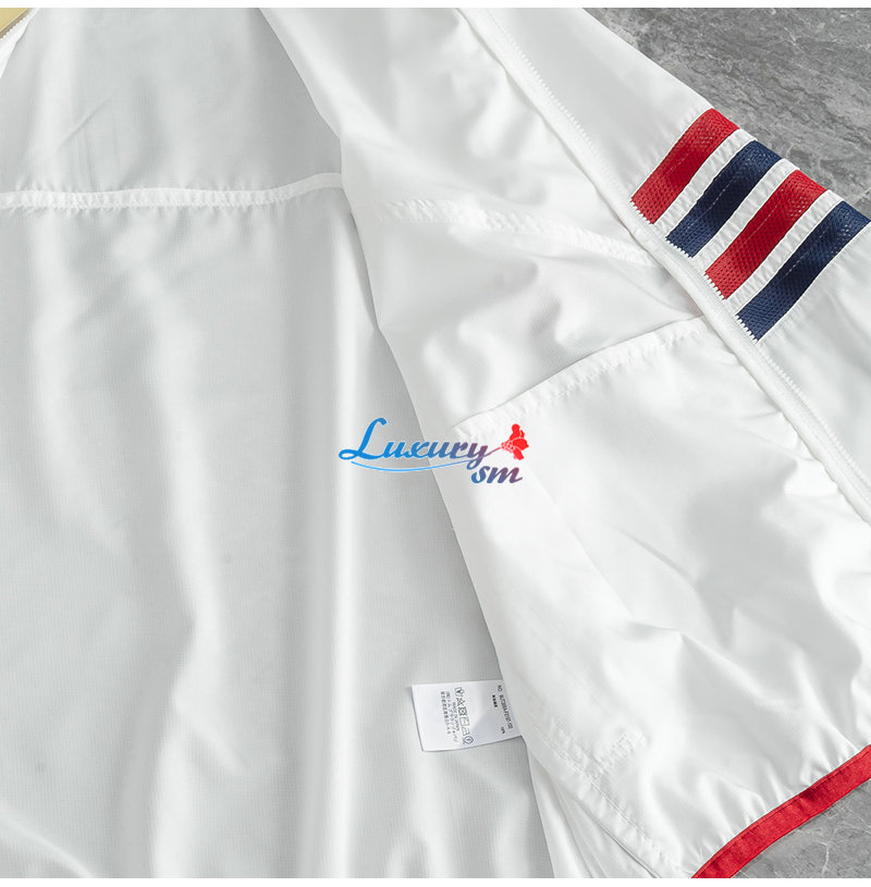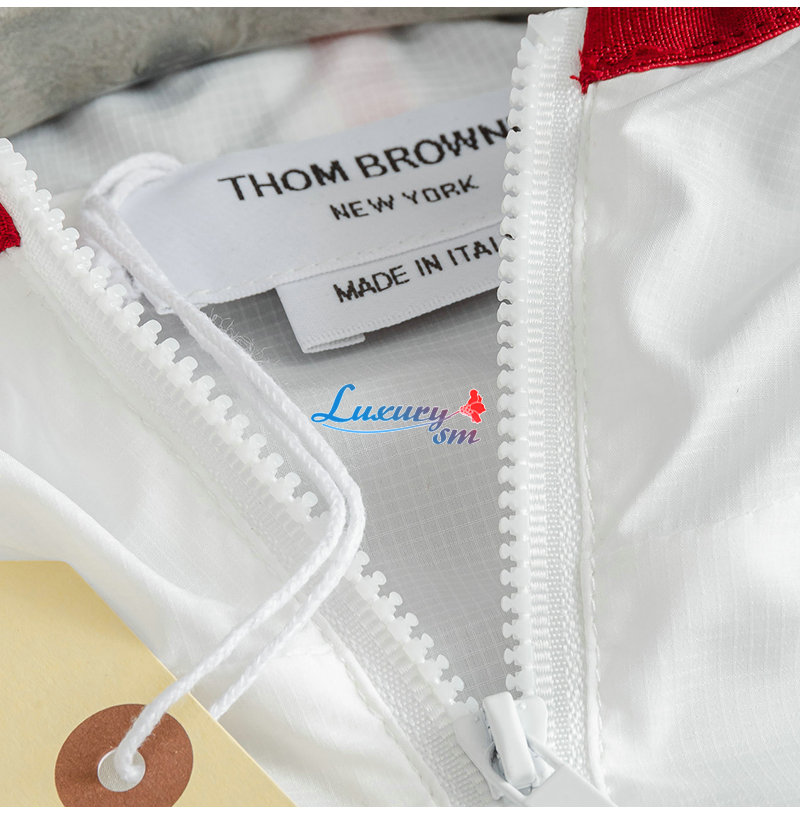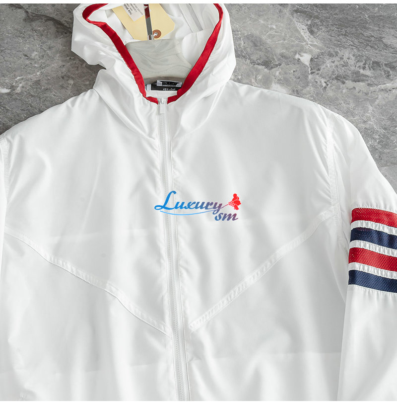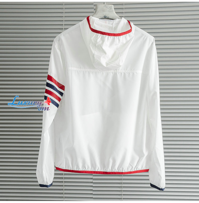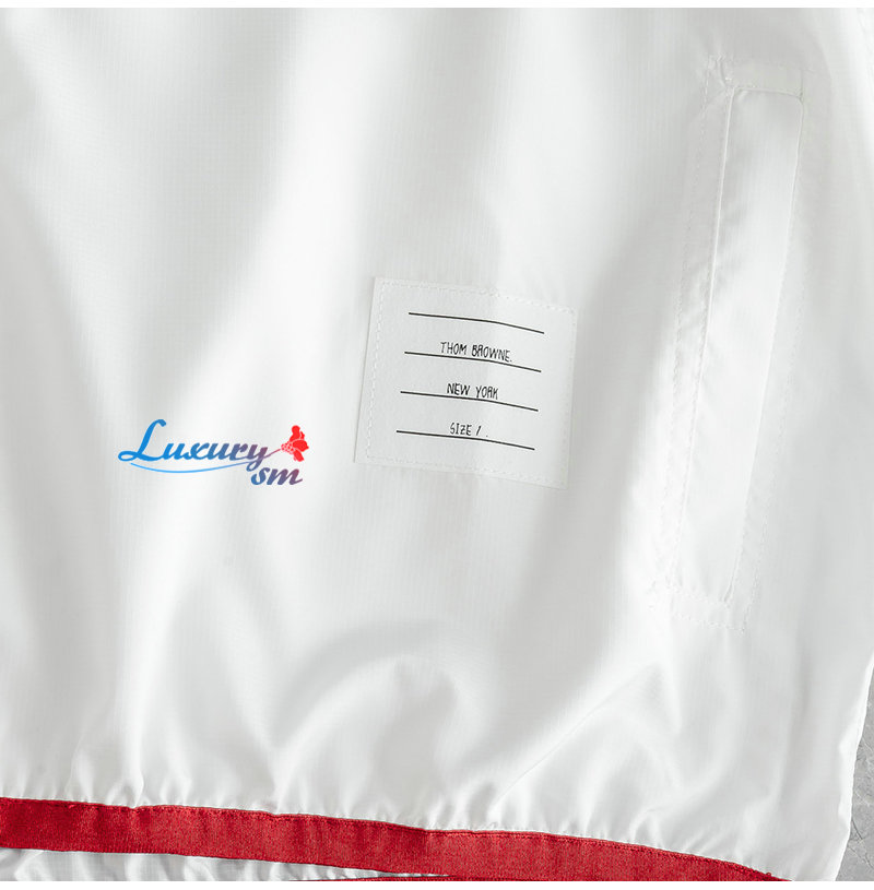 THOM BROWNE-08111 톰 브라운 화이트 스트라이프 장식 바람막이 후드 재킷 남성용
