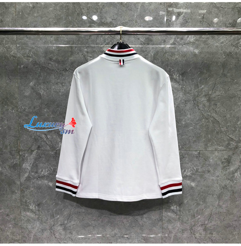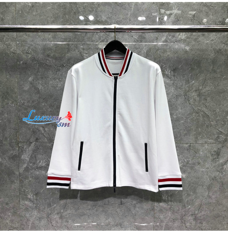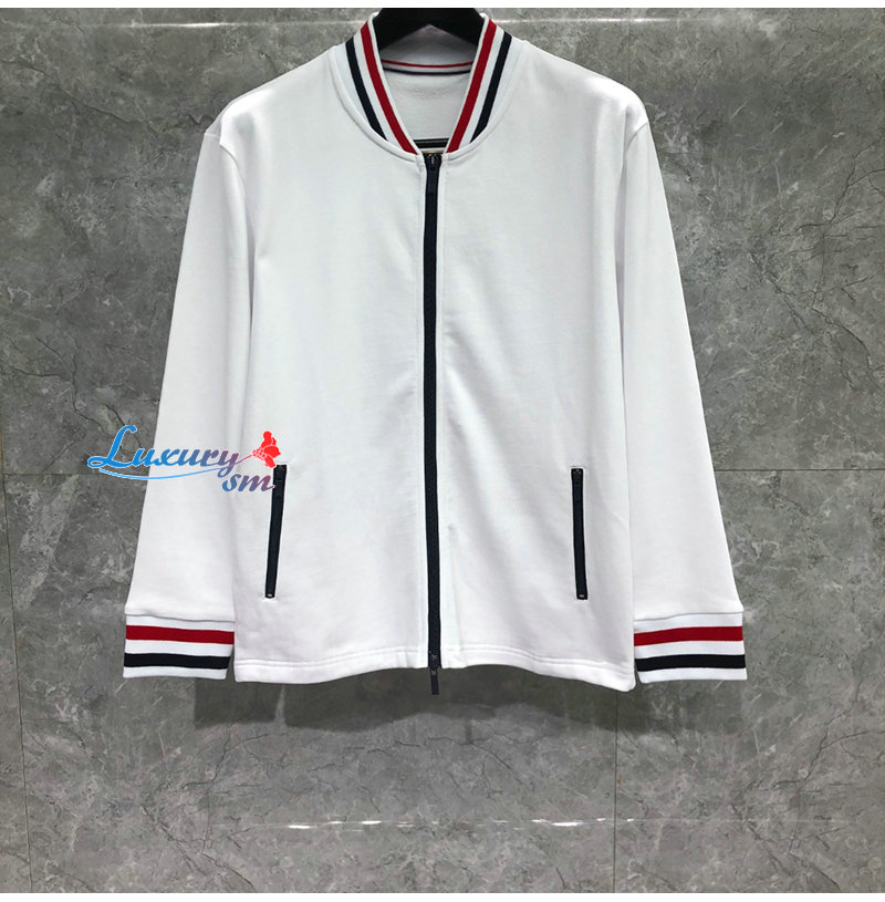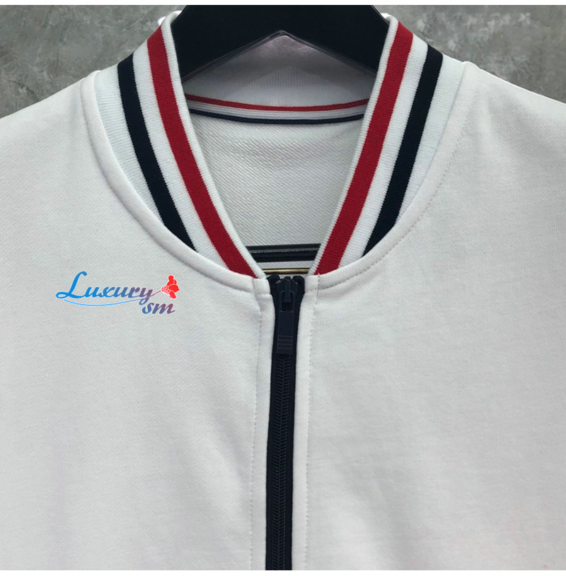 THOM BROWNE-08206 톰 브라운 화이트 스트라이프 장식 스웨트 재킷 남성용