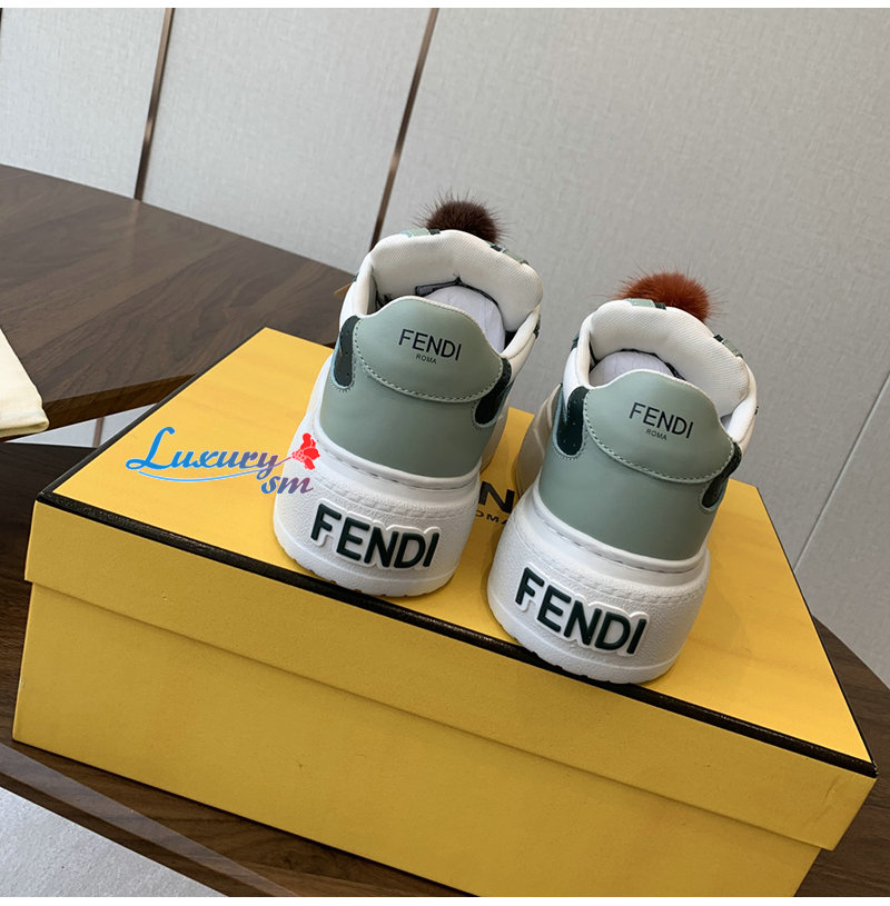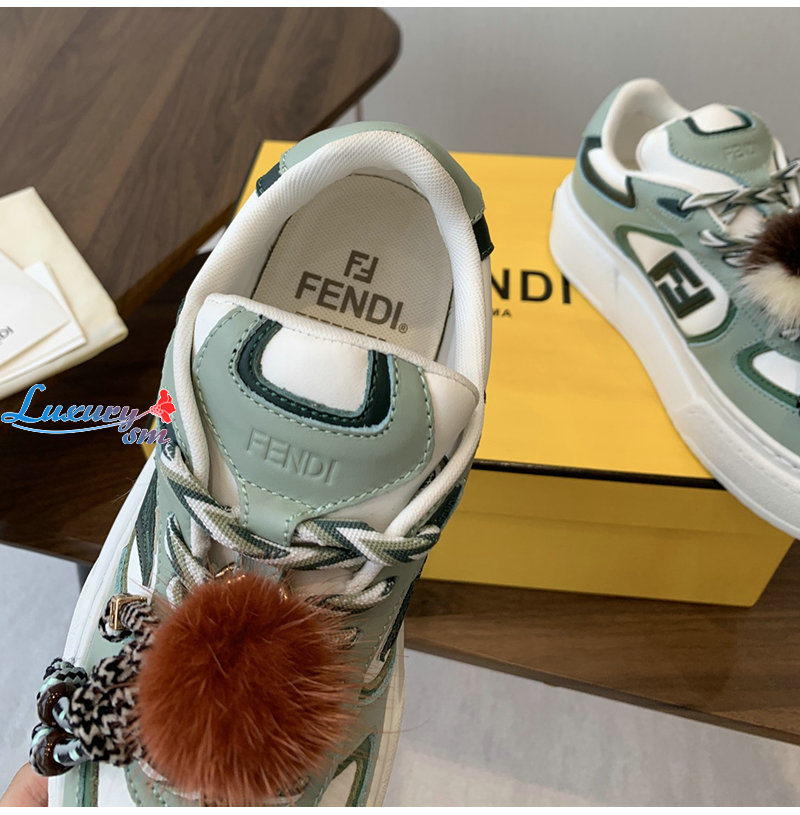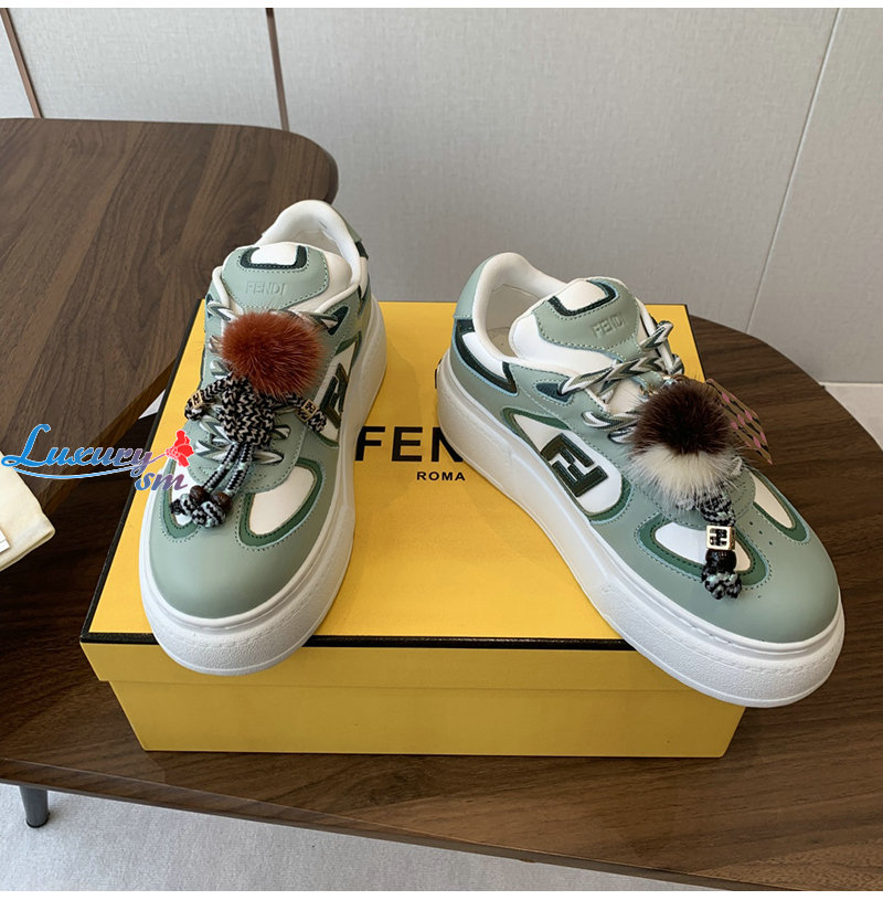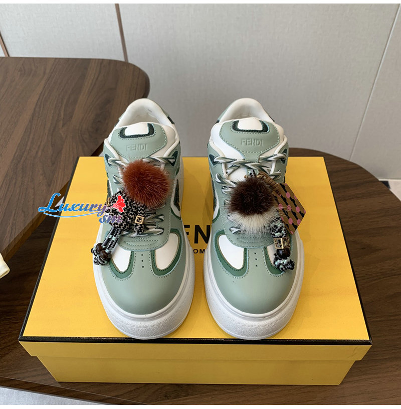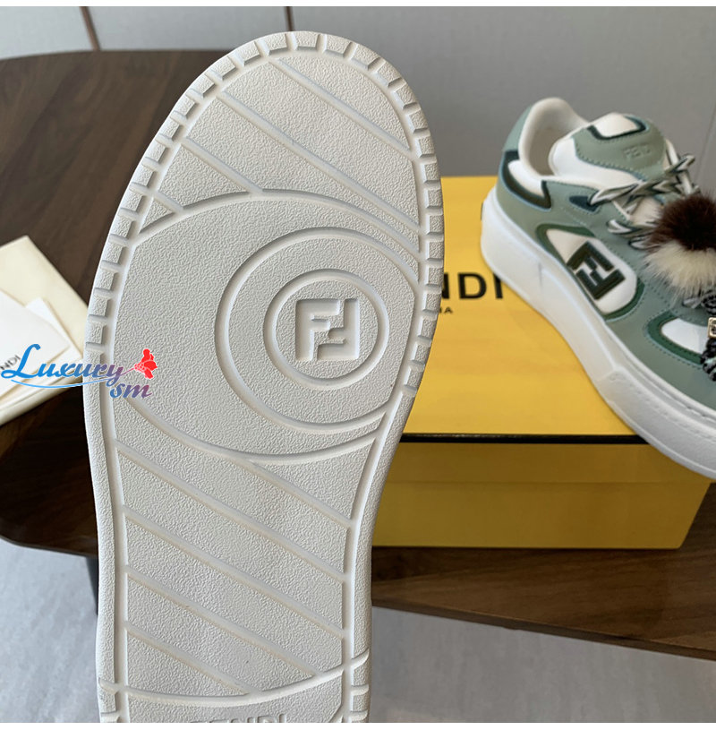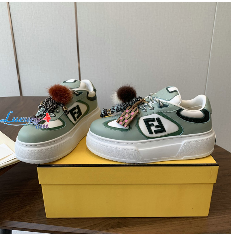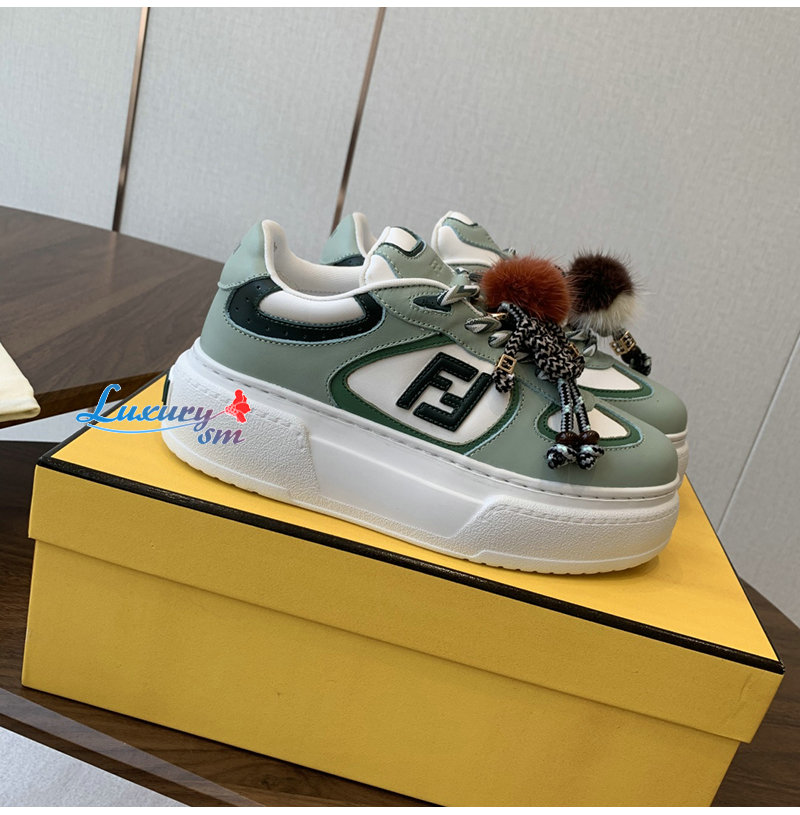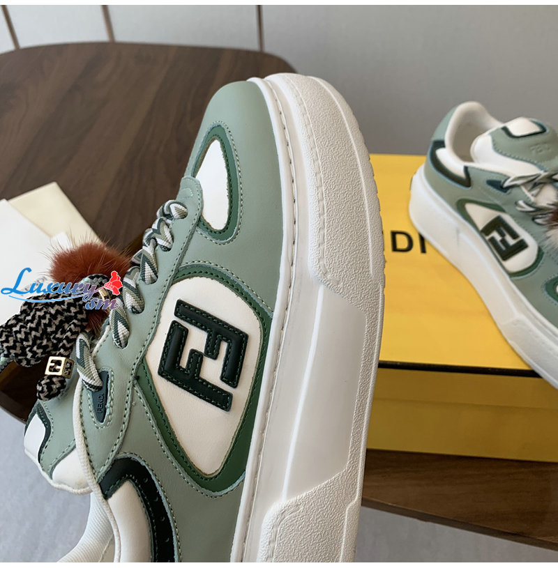 FENDI-8E8721 펜디 그린 가죽 펜디 매치 로우탑 플랫폼 참 슈즈 여성용