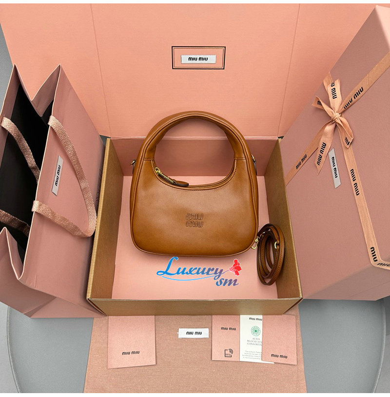 [스페셜오더]MIUMIU-5BC125 미우미우 송아지 가죽 호보 백 브라운