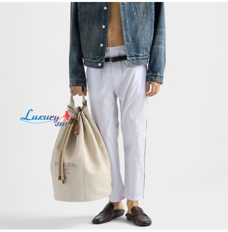 [스페셜오더]PRADA-2VY011 프라다 화이트/블루 스트라이프 캔버스 드로스트링 더플백