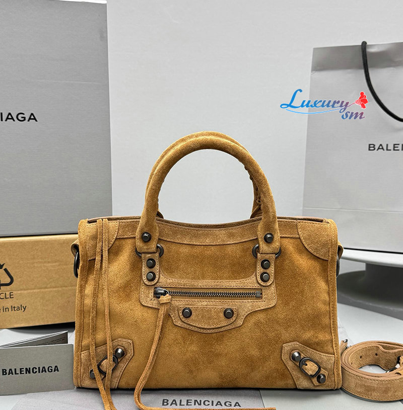 카멜 스웨이드 카프스킨 소재의 르 시티 백 스몰, 브라스 장식