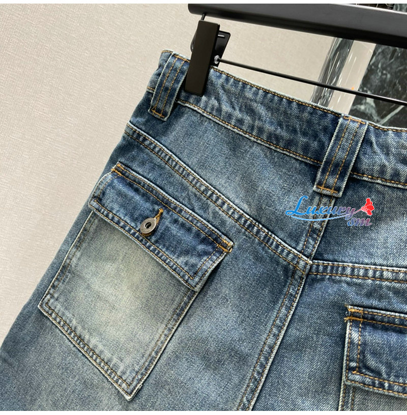 MIUMIU-032402 26년 봄/여름 신상 카고 멀티 포켓 데님 숏팬츠 여성용
